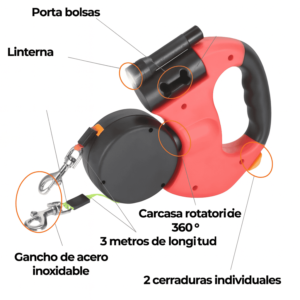 La linterna integrada ilumina el camino, manteniéndolos a ti y a tus perritos visibles y seguros durante la noche, lo mejor de todo es que también podrás ver que huelen o se quieren comer.