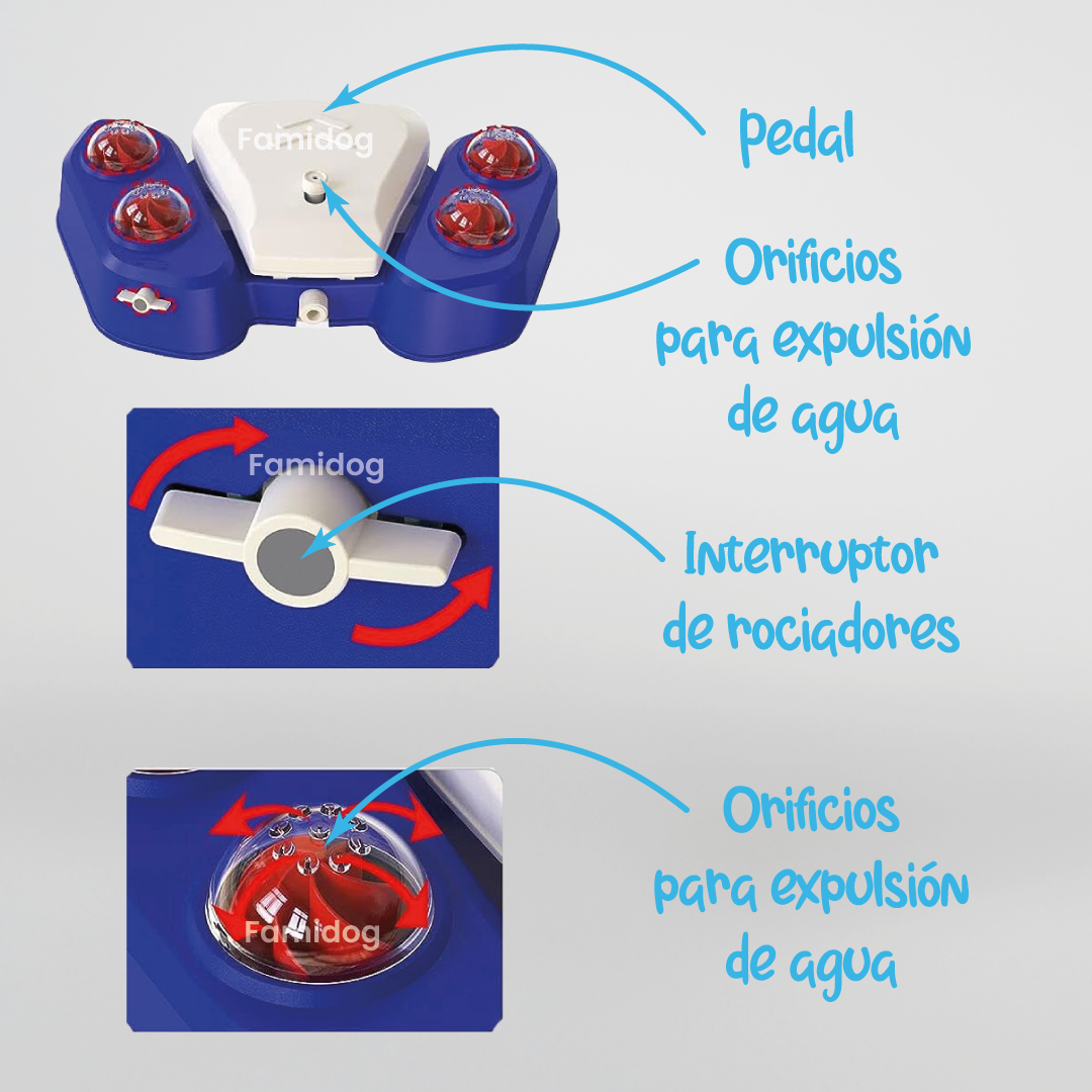 #2: ¿Quieres más? ¡Te damos más! Nuestra fuente no es sólo una fuente. ¿Baño de ducha al aire libre? ¡Sí! ¿Juguete de aspersión? ¡Por supuesto! Con nuestros dos tipos de boquillas de ducha, puedes refrescar a tu perrhijo grande, mediano o pequeño en un abrir y cerrar de ojos. 💧🐾🚿