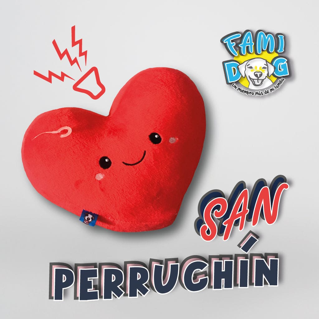 Este lindo San Perruchín tiene forma de corazon💗 en su anverso con detalles de bordado de una cara feliz🙂. El San Perruchín es un juguete de peluche que le encantará. Diseñado para mantener ocupado a tu perrhijo🐶🕰️, Hecho con tela de calidad , un relleno suave🪶 , incorporado un chirriador🎺 y un adorable diseño💖, tu perrhijo querrá jugar durante horas y horas🕰️🐕 en casa con este hermoso Perruche.